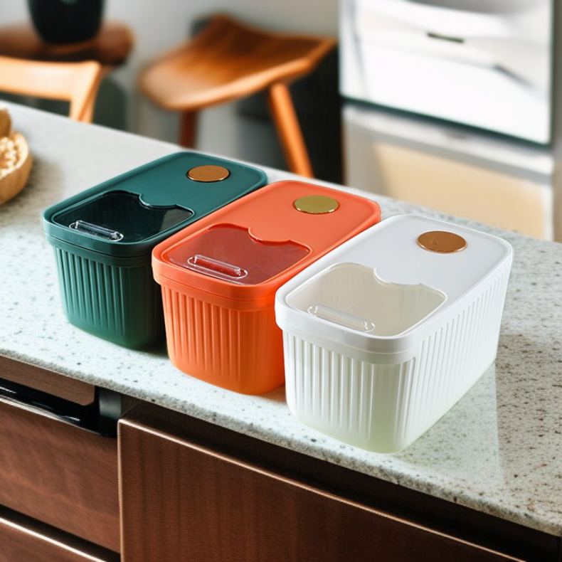 ● 방충 및 방습 기능이 뛰어나 밀가루와 쌀을 신선하게 보관할 수 있어 오랫동안 안전하게 사용할 수 있습니다. ● 밀폐력이 우수하여 해충과 습기로부터 식재료를 완벽하게 보호해 건강한 식단을 지킬 수 있습니다. ● 투명한 디자인으로 내용물과 잔량을 한눈에 확인할 수 있어 편리하며, 공간 활용도가 높아 주방 정리에 탁월합니다. ● 내구성 좋은 소재로 제작되어 반복 사용에도 변형이 적고, 세척이 쉬워 위생적으로 관리할 수 있습니다.