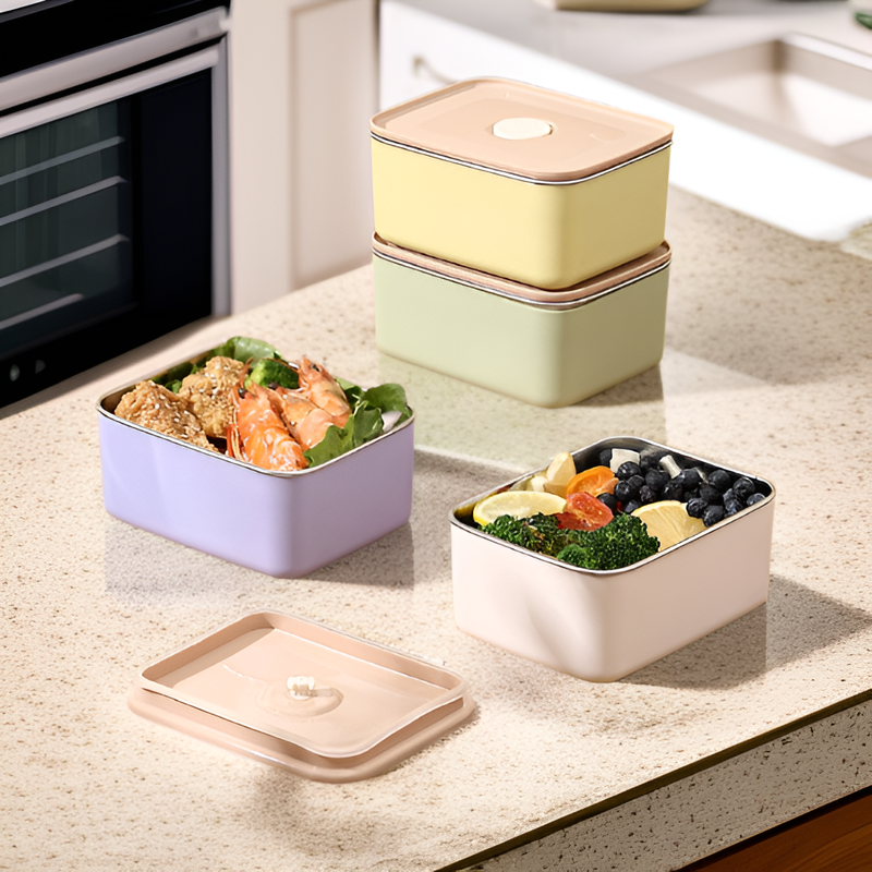 304스테인리스 밀폐 보관용기 가정용 냉장고용 뚜껑 포함 도시락 사각 피크닉 음식 분리 용기
